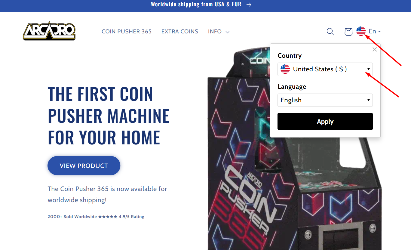 The currency will be automatically updated to the country you've selected. You can also choose your preferred language for a more convenient experience.